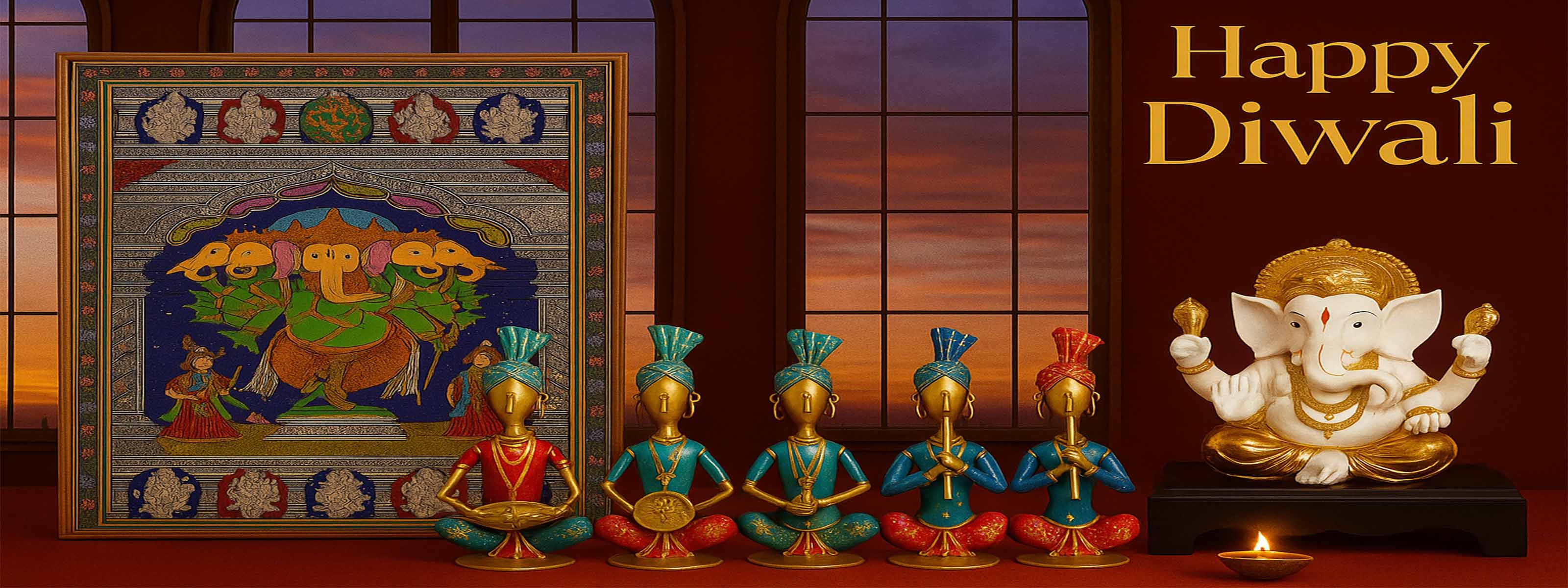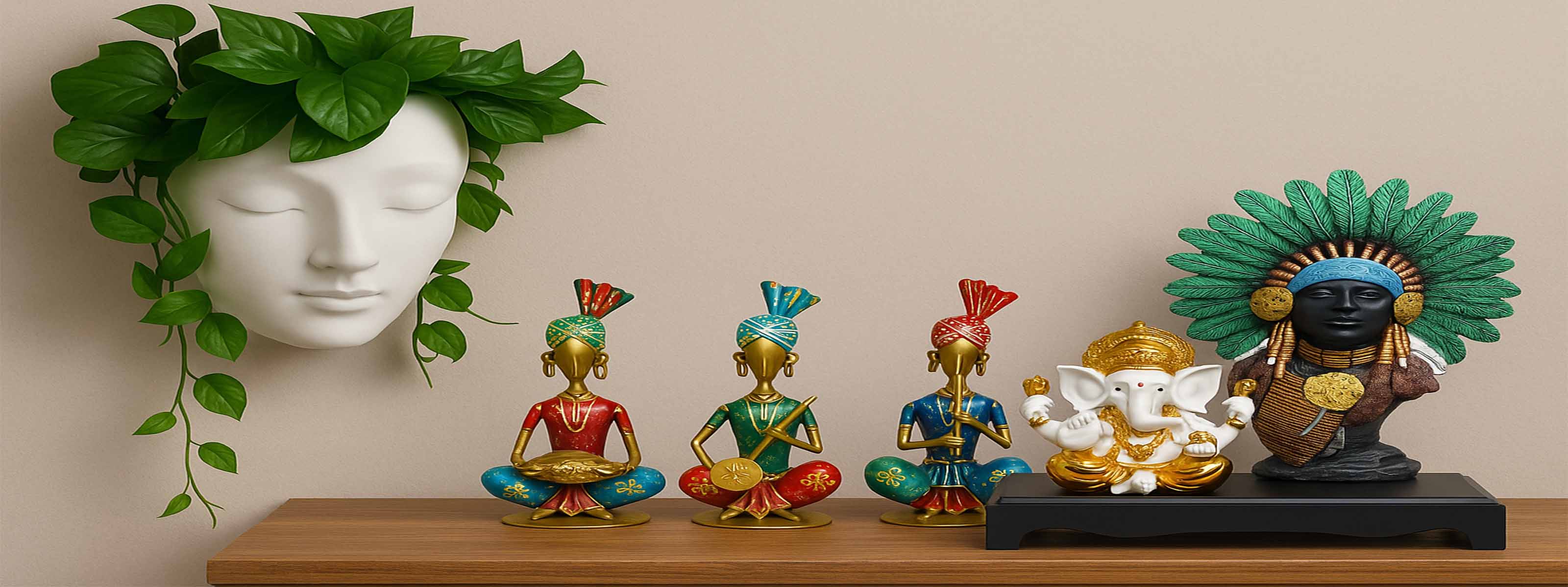 Set of 3 Traditional Rajasthani Seated Musician Metal Figurines | Folk Decor