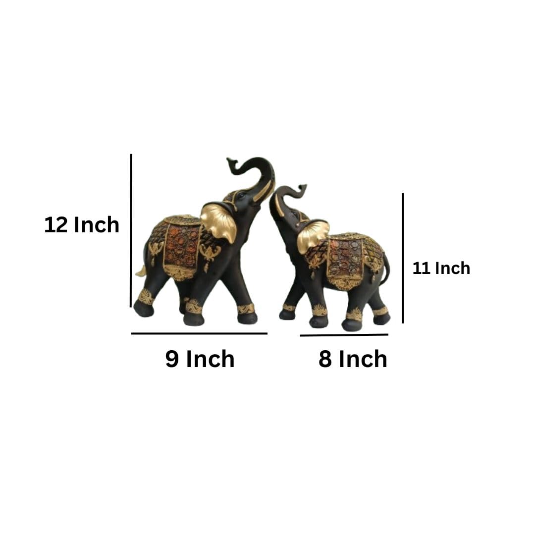 Gold Plated Resin Elephant Pair Statue | Vastu & Feng Shui Figurine for Home Decor | Prosperity & Wealth