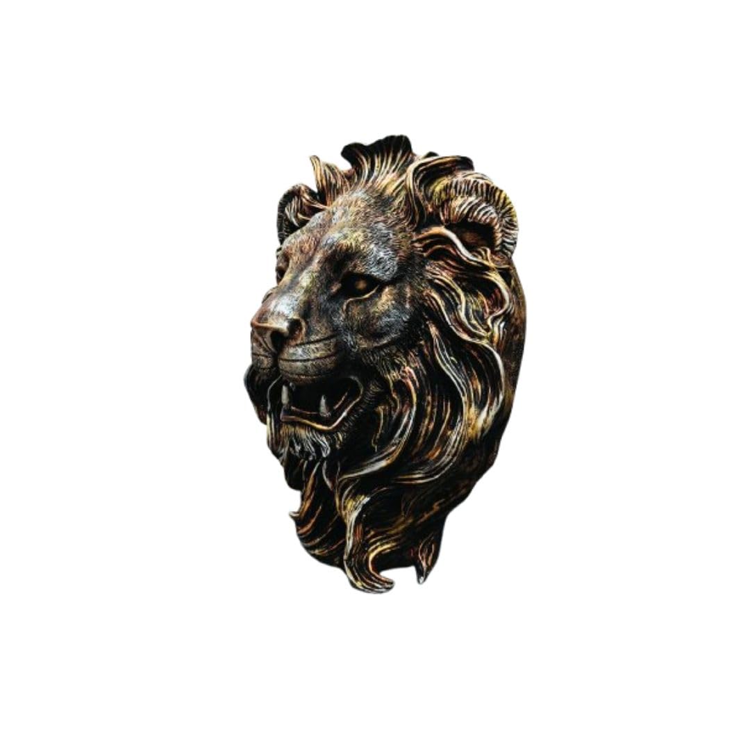 Regal Lion Head Wall Sculpture - Bronze & Gold Finish Resin Art Decor